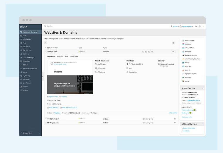If you are a shared hosting customer, Plesk enables you to easily manage all of your websites using a web interface . For server administrator or a web designer, Plesk helps manage websites, and suite of tools to manage the server itself.